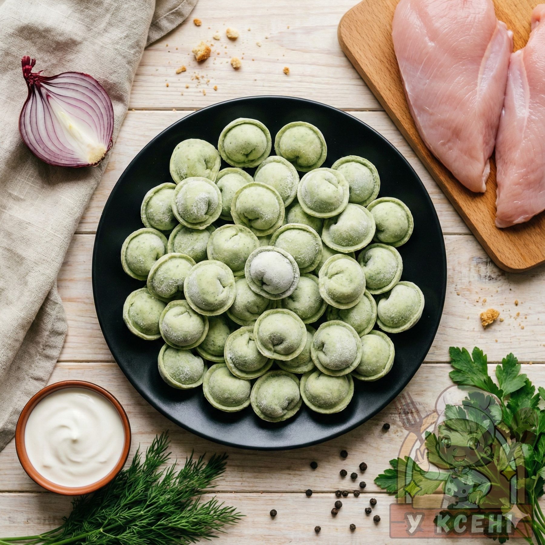 Пельмені з Куркою (в Шпинатному тісті)
